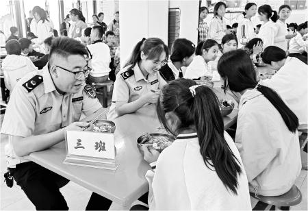 近日,岷县市场监管部门工作人员在学校陪餐。新学期伊始,岷县通过开启“监管+陪餐”模式,对全县中小学校全方位开展开学“第一餐”监管,切实守护师生“舌尖上的安全”。