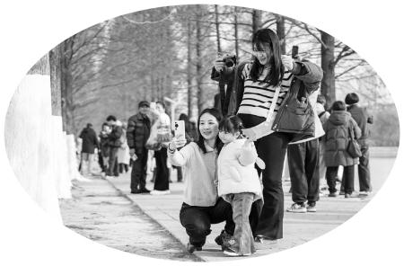 ▼12月18日,市民在长沙市烈士公园游玩拍照。