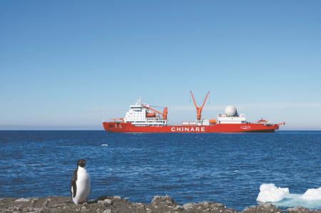 12月29日在秦岭站海域拍摄的“雪龙”号极地科考破冰船。